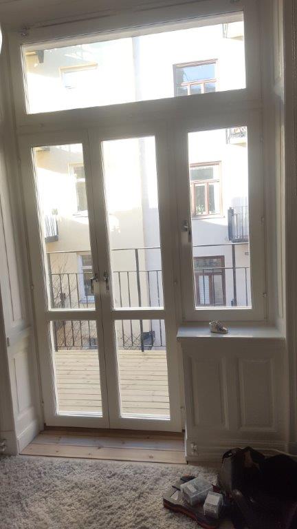 Tillbyggnad balkonger stålbalkong, smidesräcke standard och ändring av fönster till fönsterdörr