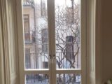 Stålbalkong med smidesräcke och ändring av fönster till fönsterdörr, nya räcken mot gata i slät aluminiumplåt