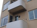 Lättbetongbalkong: Tillbyggnad av lättbetongbalkonger med smidesräcken, ändring av fönster till fönsterdörr