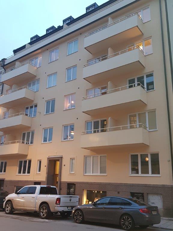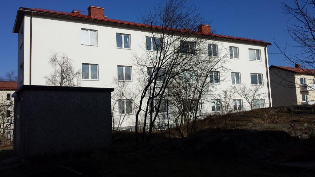 Fasadrenovering: Renovering av fasad ca 1500m2 , lagning av bompartier och sprickor samt målning av hela fasaden.